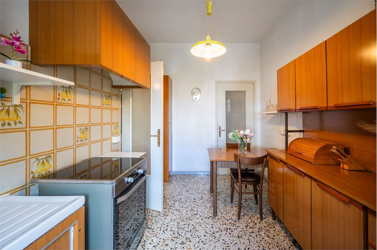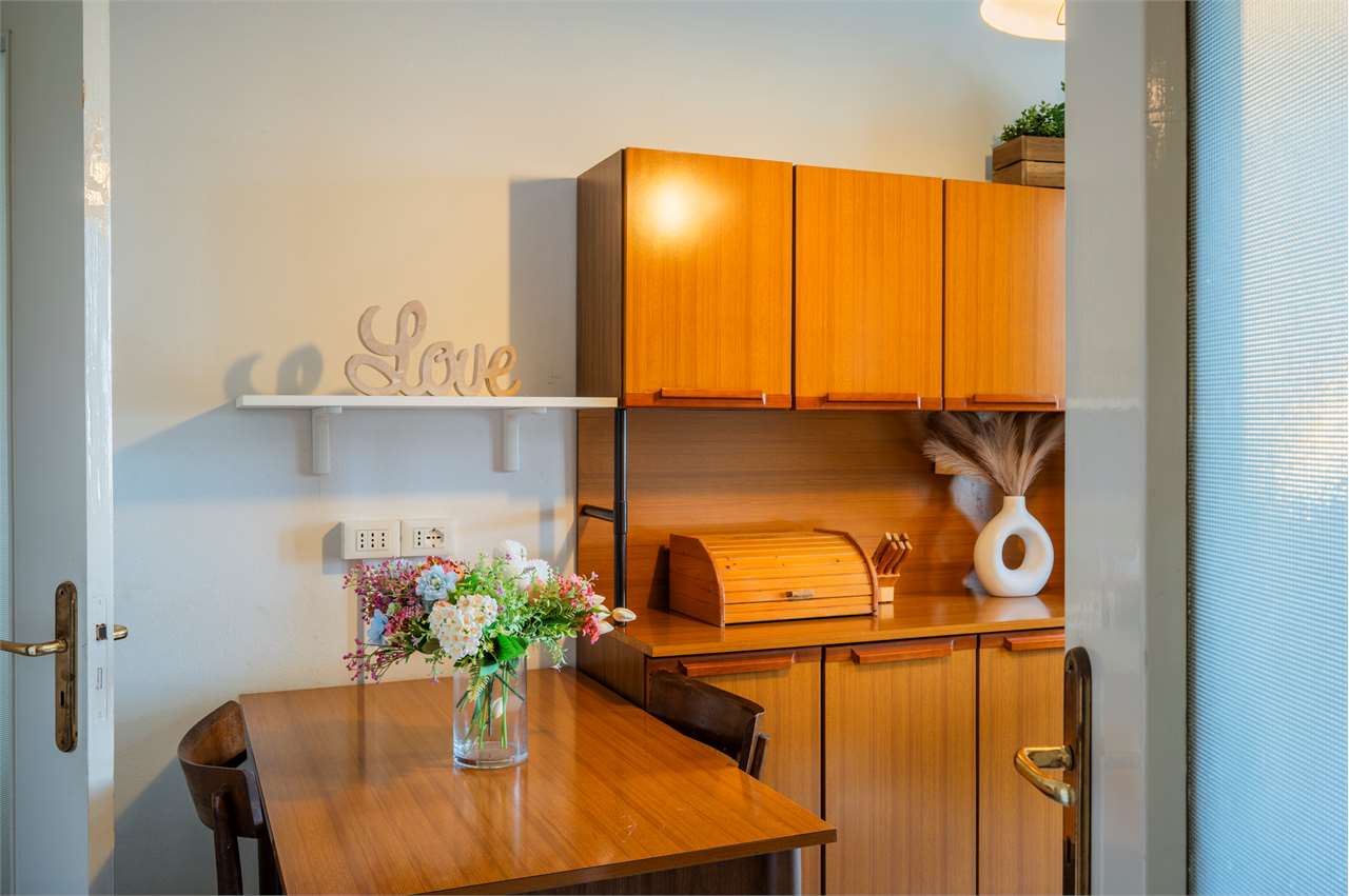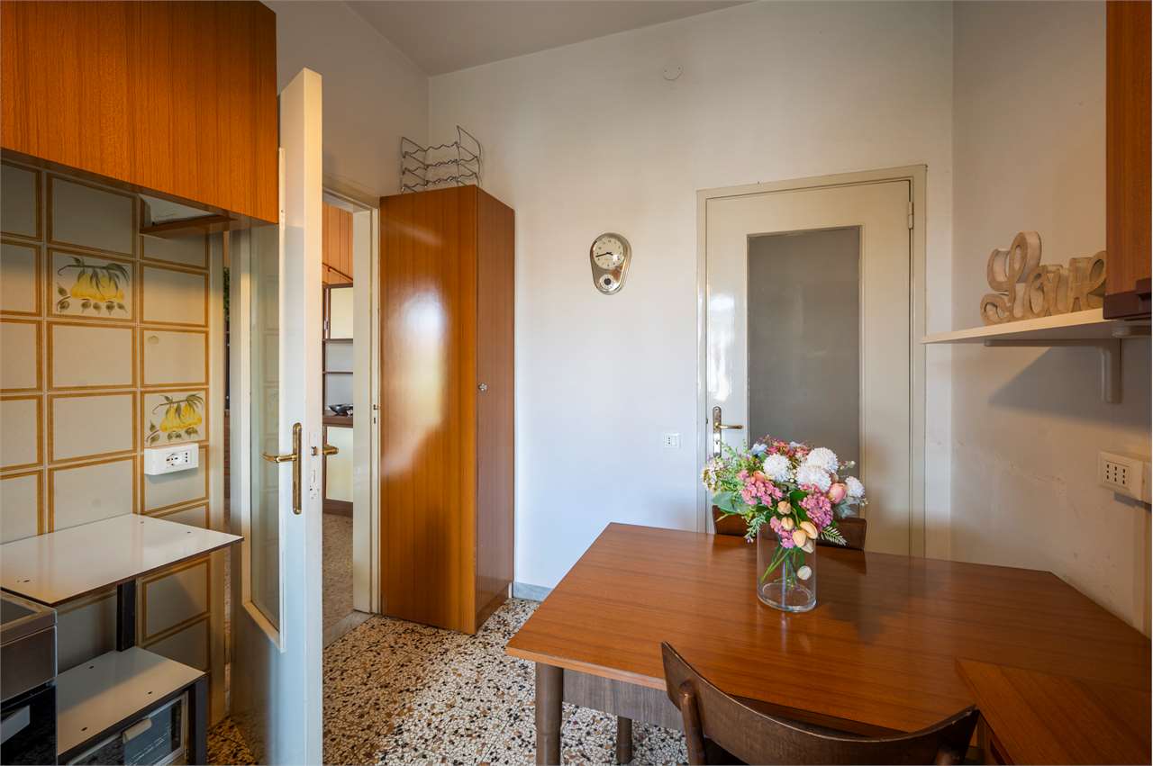 Cucina separata con balcone (che offre la possibilità, in caso di ristrutturazione, di ricavare una cameretta aggiuntiva e un soggiorno-pranzo più contenuto, così da aumentare i posti letto)