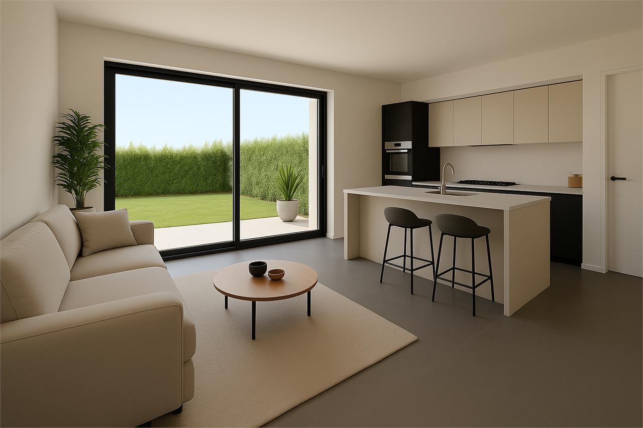 L’abitazione, di 115 m² commerciali, si sviluppa tutta su un unico livello ed è dotata di ingresso indipendente e giardino esclusivo di circa 120 m², che circonda la proprietà e garantisce massima privacy e comfort.