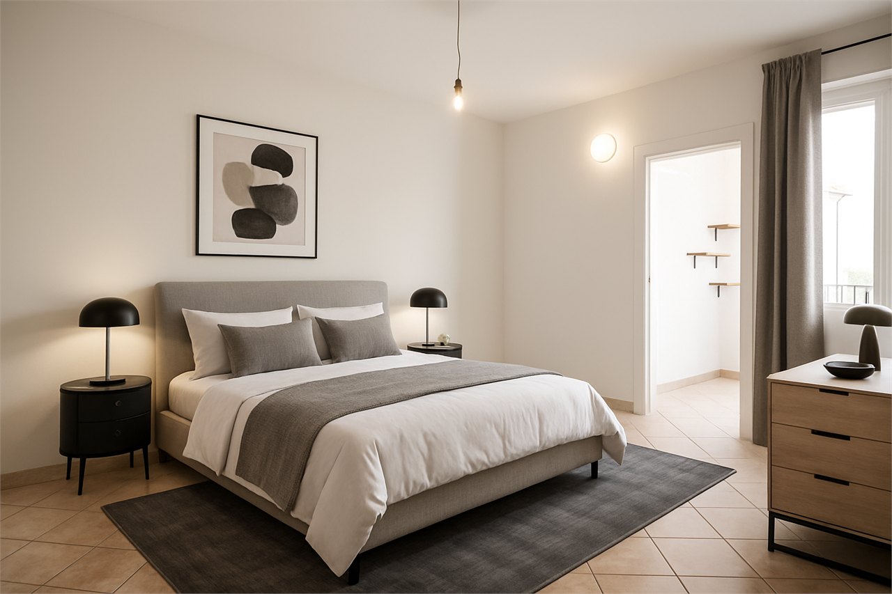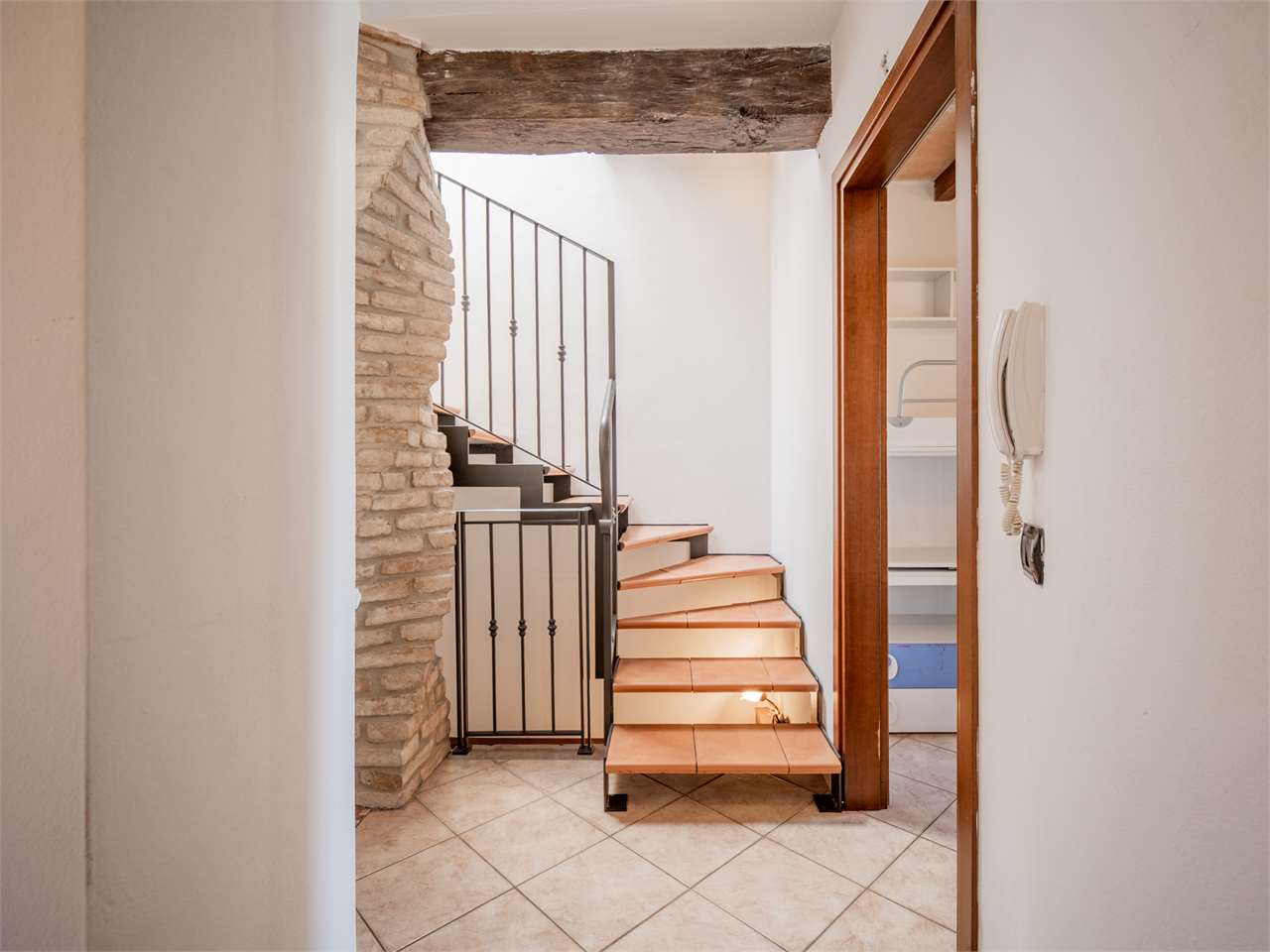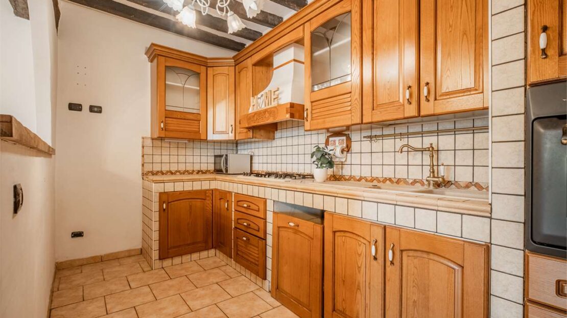L’abitazione si sviluppa su tre livelli. Al piano terra ingresso su soggiorno, cucina semi-aperta divisa da muretto e arco, bagno e ripostiglio. Al primo piano una camera matrimoniale, una mezza camera e secondo bagno. Al piano sottotetto, ampio spazio aperto utilizzabile come ulteriore camera, mezza camera, stanza pluriuso o cabina armadio e terzo bagno.