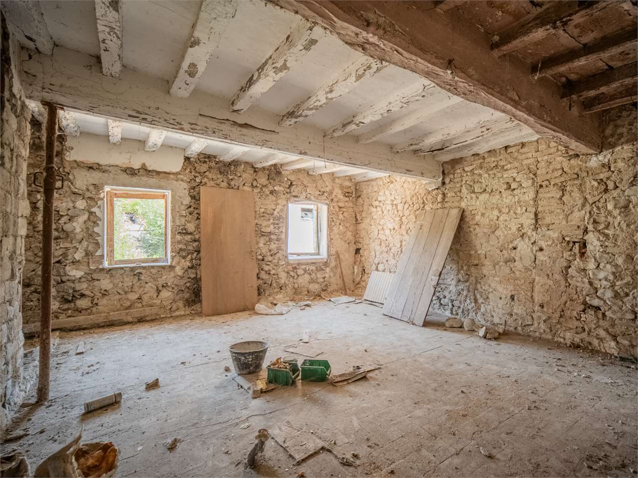 Una zona servizi in sasso allo stato grezzo (circa 180 mq), perfetta come deposito, laboratorio o ulteriore spazio da recuperare;